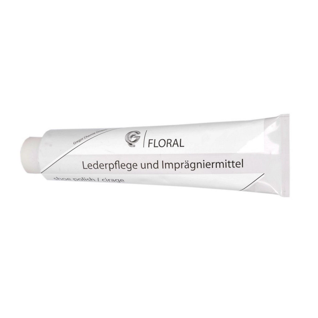 A színsemleges FLORAL bőrápoló és impregnáló cipőápoló termék tápláló és hidrofób hatású, viaszból, olajból és vízből készült emulziós krém.