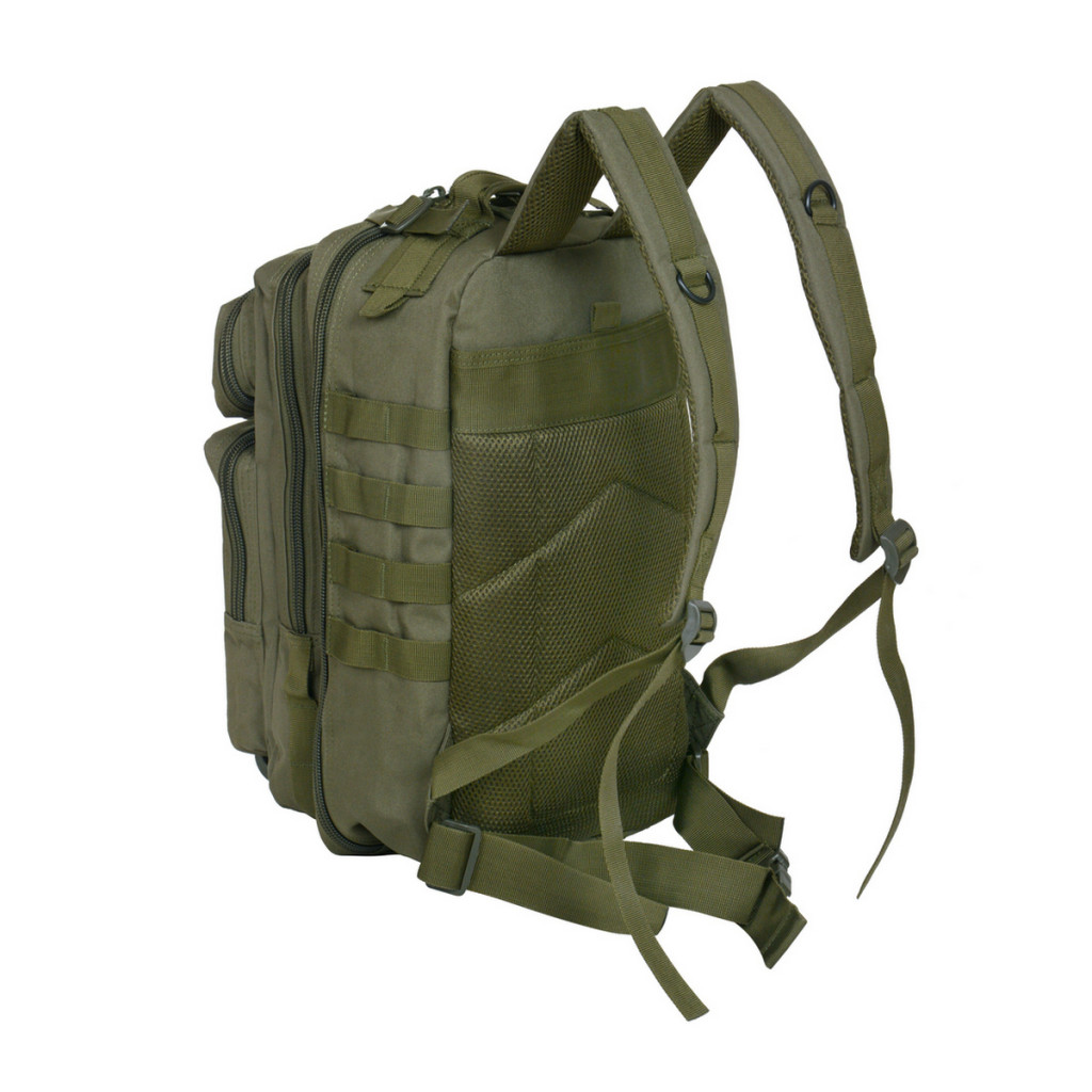 Der Rucksack besteht aus robustem Polyester mit PVC-Beschichtung. Das ergonomisch geformte, gepolsterte Rückenteil und die Schultergurte bieten maximalen Tragekomfort, selbst bei langen Wanderungen oder Einsätzen.