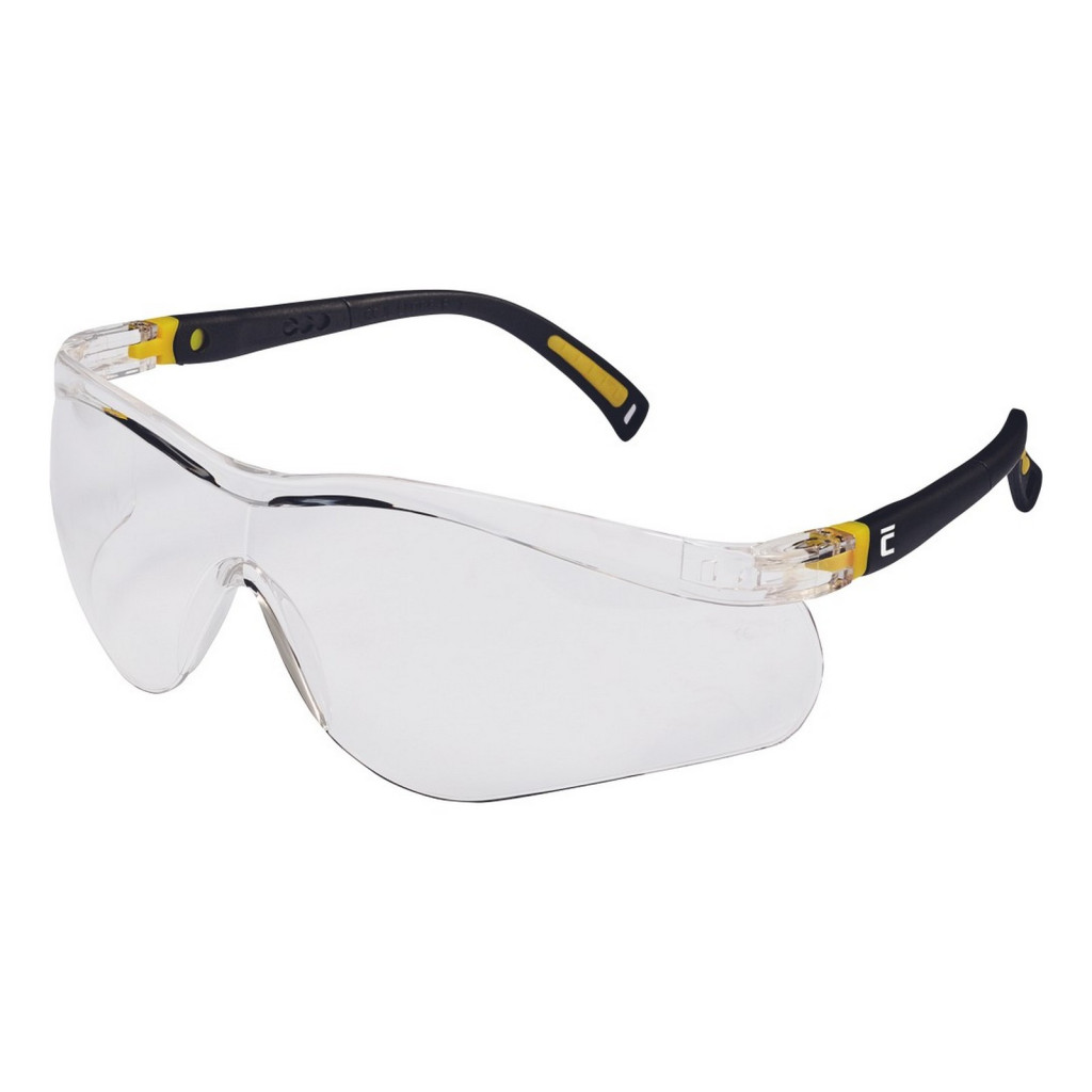 Optische Sportbrille der Sportklasse 1 mit gelber Polykarbonatlinse mit UV-Filterschutz (nach EN 170), Anti-Kratz- und Antifog-Beschichtung (Klasse F nach EN 166), geringem Energieaufprallschutz und verstellbarem Bügelwinkel und -länge.