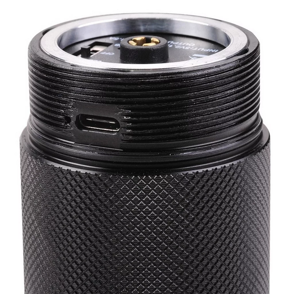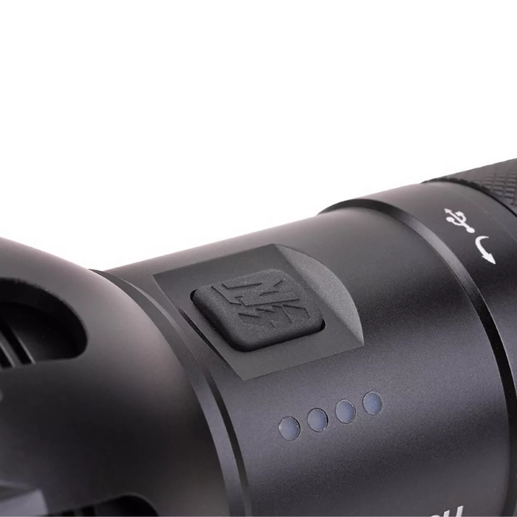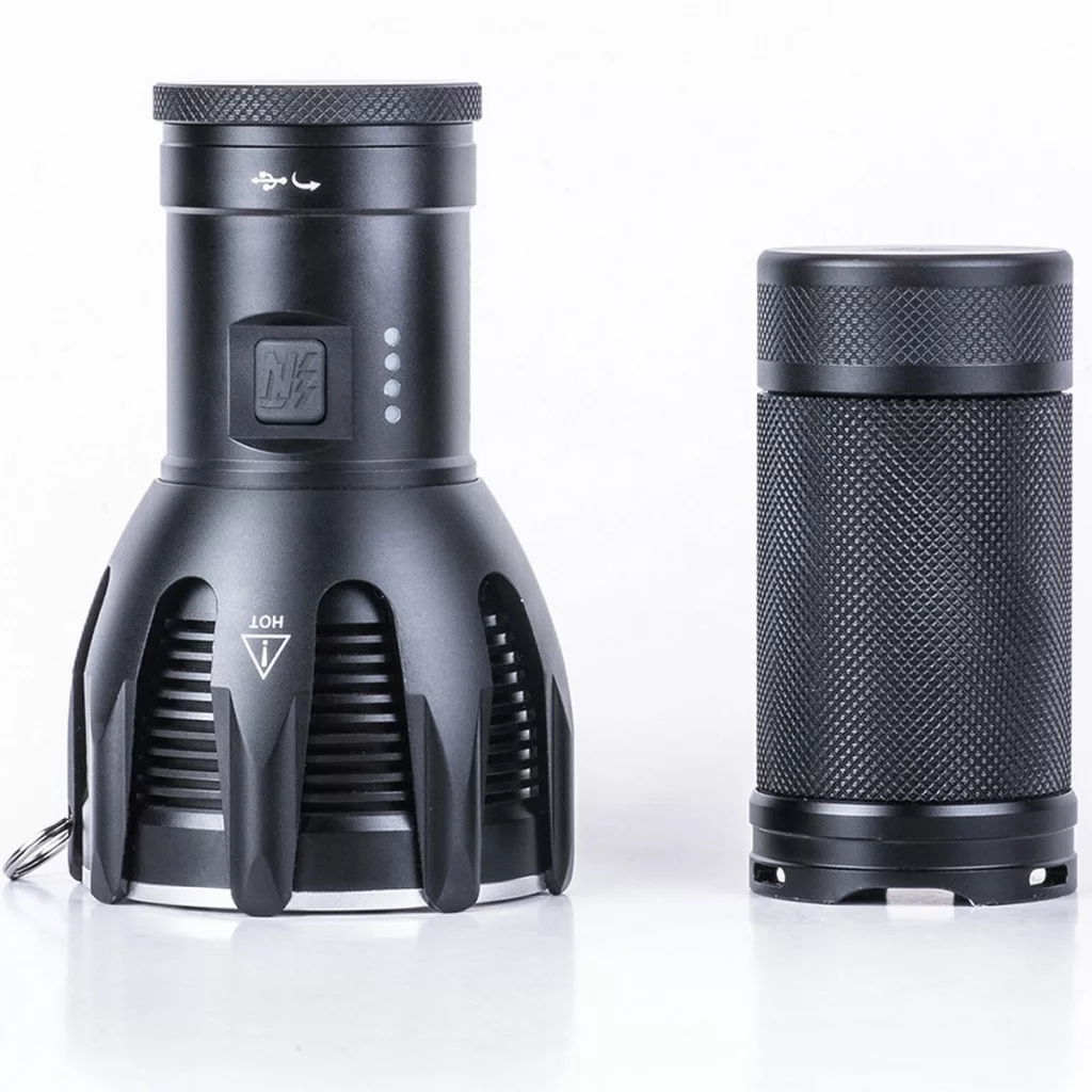 Das 4 × 2600 mAh (14,8 V) Akkupack kann von der Lampe getrennt und separat als Powerbank benutzt werden. Taschenlampe und Powerbank sind gemäß IPX7 100% wasser- und staubdicht sowie stoßfest. Zwei Schraubverschlüsse dieser Taschenlampe können unterwegs ganz einfach zu einem wasserdichten Behälter z.B. für Notfallmedizin zusammengebaut werden. Die USB Typ C Auflade-Technologie ermöglich eine Aufladung der Saint Torch 30 in nur 3 Stunden - das ist ca. 20% schneller als ein Standard-Akku mit ähnlicher Kapazität! Eine 4 LED-Statusanzeige informiert beim Laden über den aktuellen Ladezustand. Der als externe Powerbank nutzbare Li-Ion Akku dieser Taschenlampe kann z,B. ein reguläres Smartphone etwa 3 mal vollständig aufladen, bevor er selbst wieder an die Steckdose muss. Die Saint Torch 30 wird mit einer multifunktionalen, strapazierfähigen Tragetasche und einem robusten Schultergurt geliefert. Ein hochwertiges Schnell-Ladegerät ist selbstverständlich dabei. Fazit: Die NEXTORCH® Saint Torch 30 ist dank der sehr einfachen Handhabung, der extrem hohen Leucht-Leistung und der Vielfältigkeit das optimale, mobile Beleuchtungssystem für den Rettungsdienst, Polizei, Militär, Camping, Jagd, Hobby und vor allem Reisen.