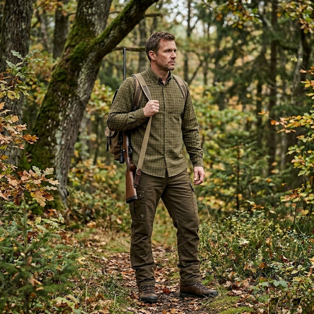 Hagyományos szabású, az erdő színeit idéző, zöld kockás vadász ing, melyet egyaránt ajánlunk a hétköznapokra is.