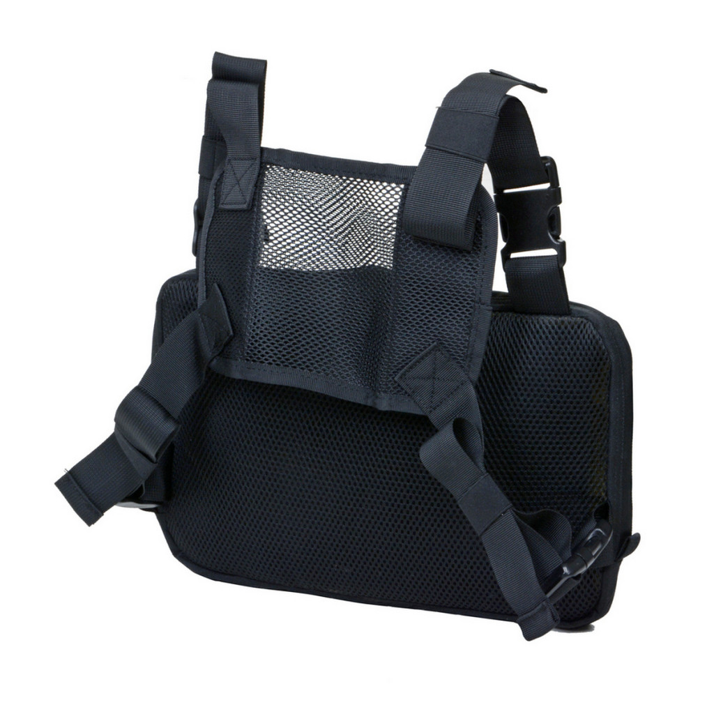 Ez a fekete táska egy olyan taktikai felszerelés, amelyet kifejezetten arra terveztek, hogy a mellkason hordható legyen, és különböző kiegészítők, felszerelések praktikus tárolására szolgáljon. A MOLLE rendszer lehetővé teszi a táska testreszabását, mivel a táska felületére különböző zsebeket, tokokat és egyéb tartozékokat lehet rögzíteni. A táska pántjai állíthatóak, így kényelmesen illeszkedik különböző testalkatokhoz, és stabilan marad a helyén mozgás közben is.