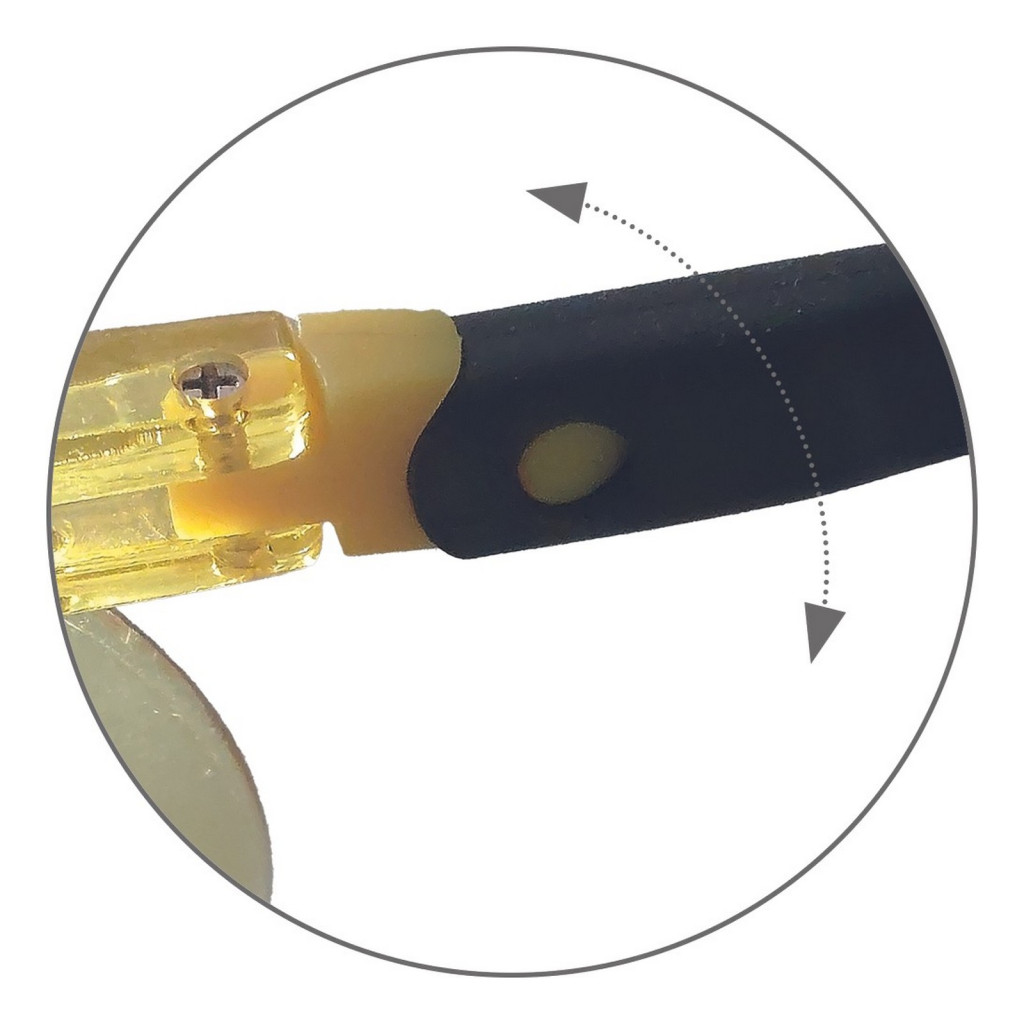 27 grammos, polikarbonát látómezős szemüveg állítható hosszúságú és dőlésszögű szárral, sportos kivitelben. A látómező karcálló és p áramentes , EN 166 sz. szabvány szerinti F osztály - kis energiájú becsapódás elleni védelem, 1. optikai osztály, a sárga látómező az EN 170 sz. szabvány szerinti, UV sugárzás ellen védő szűrővel rendelkezik.