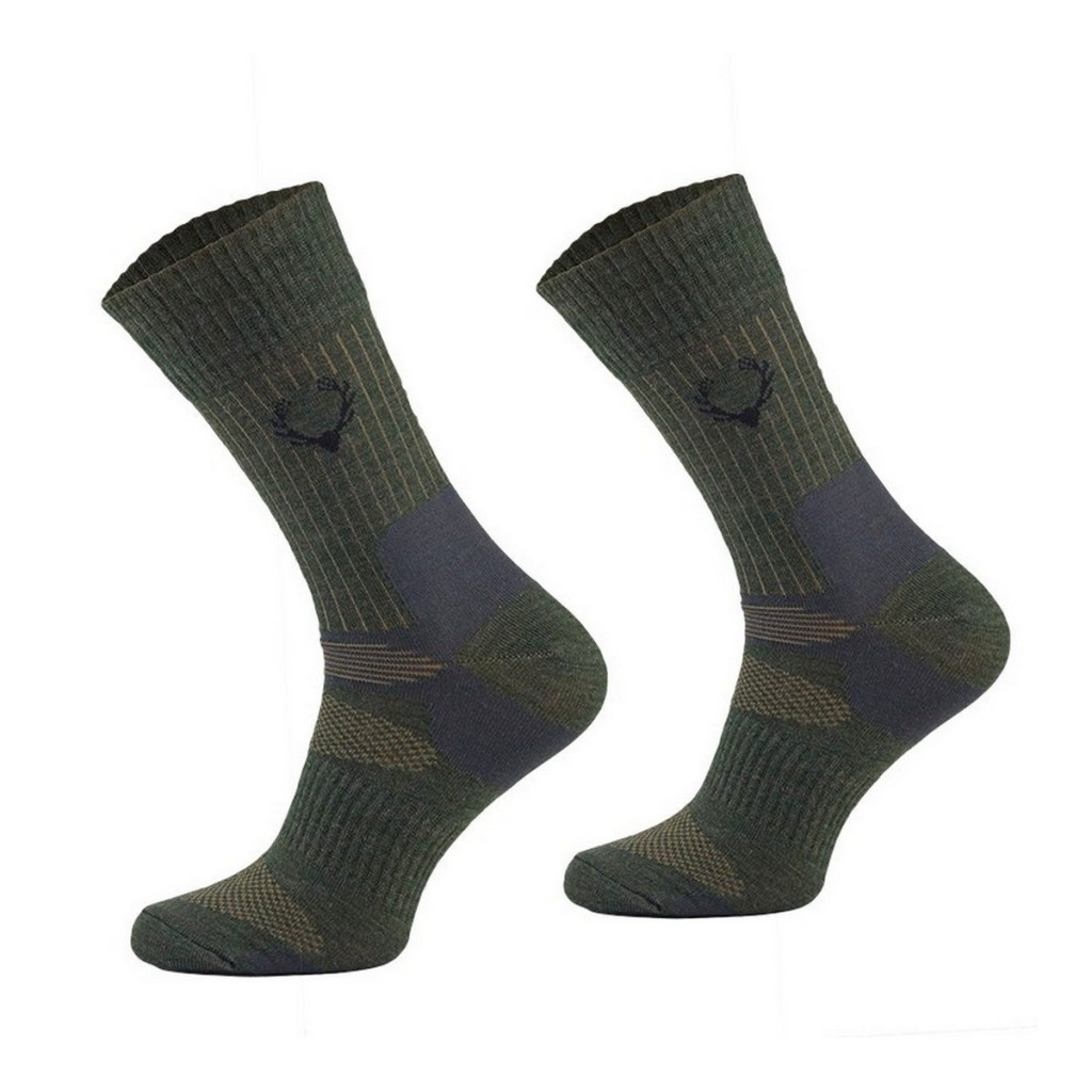 Aceste șosete de vânătoare sunt concepute pentru confort și durabilitate în toate condițiile de exterior. Fabricate din lână merinos de înaltă calitate, oferă o respirabilitate excelentă și o reglare naturală a temperaturii, menținând picioarele uscate și calde, indiferent de condițiile meteorologice. Datorită structurii sale delicate, lâna merinos este, de asemenea, moale și plăcută la atingere, eliminând orice mâncărime sau disconfort. Combinația de acrilic și lână merinos sporește durabilitatea materialului, asigurând o utilizare de lungă durată și rezistență la deteriorări mecanice. Acrilul ajută, de asemenea, la menținerea nivelului adecvat de elasticitate, permițând șosetelor să se potrivească ușor piciorului și să ofere o purtare confortabilă pentru ore lungi. Aceste șosete sunt concepute pentru vânători și pasionații de activități în aer liber care petrec multe ore în aer liber, fie în condiții mai reci, fie în condiții mai calde. Construcția subțire le face perfecte ca strat de bază, potrivindu-se bine cu diverse tipuri de încălțăminte, oferind confort și sprijin în timpul oricărei activități. Datorită respirabilității, proprietăților antibacteriene naturale și compoziției materialului, șosetele noastre sunt o alegere ideală pentru vânătoare, drumeții sau aventuri zilnice în aer liber.