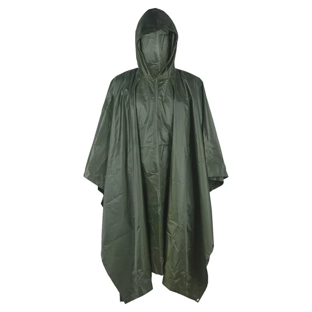 Poncho verde cu glugă retractabilă, închidere cu capse pe ambele părți, jachetă de ploaie MTramp complet impermeabilă și la vânt, confecționată din poliester rezistent. Acest material este ușor, durabil și impermeabil, fiind ideal pentru protecție împotriva ploii. Jacheta poncho vine într-o husă practică cu fermoar, care o face ușor de depozitat și transportat. Un astfel de poncho de vară este adesea folosit în timpul drumețiilor, campingului, pescuitului și altor activități în aer liber, deoarece protejează eficient împotriva ploii și a vântului.