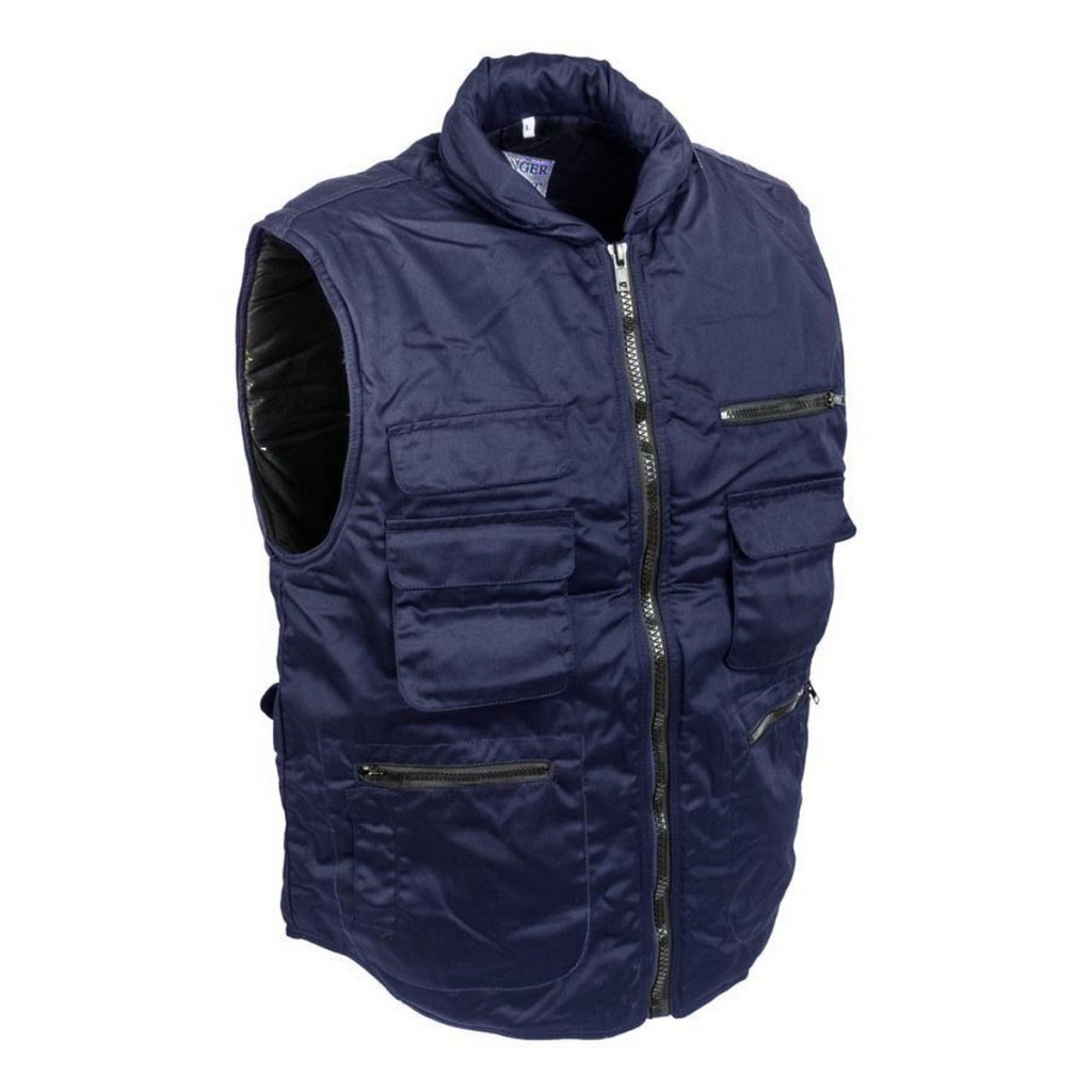 Vestă groasă din material hidrofug, cu căptușeală și glugă, pe care se poate închide cu fermoar în guler.