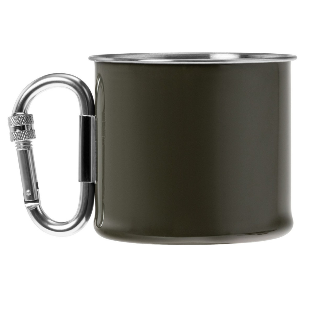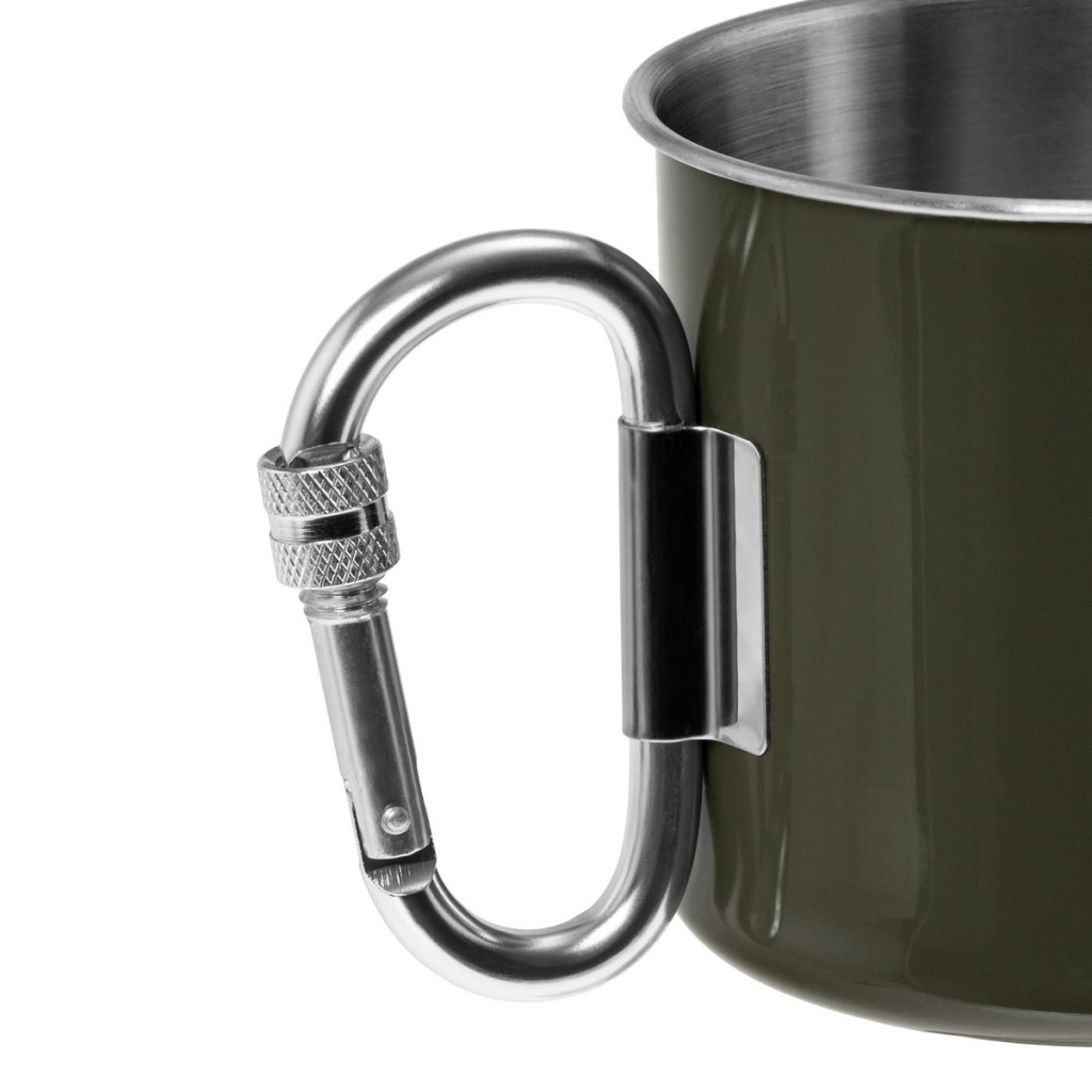 Turistický hrnček s objemom 500 ml vyrobený z odolnej jednostennej nehrdzavejúcej ocele, ktorý umožňuje priame ohrievanie tekutín nad otvoreným ohňom. Jeho robustný a odolný dizajn je ideálny na turistiku, prežitie a iné outdoorové aktivity. Hrnček je vybavený skladacou rukoväťou v štýle karabíny, ktorá umožňuje jednoduché pripevnenie k pútkam batohu alebo výstroju pomocou systémov MOLLE/PALS. Karabína obsahuje aj kovové uzamykacie puzdro, ktoré pomáha predchádzať náhodnému uvoľneniu.