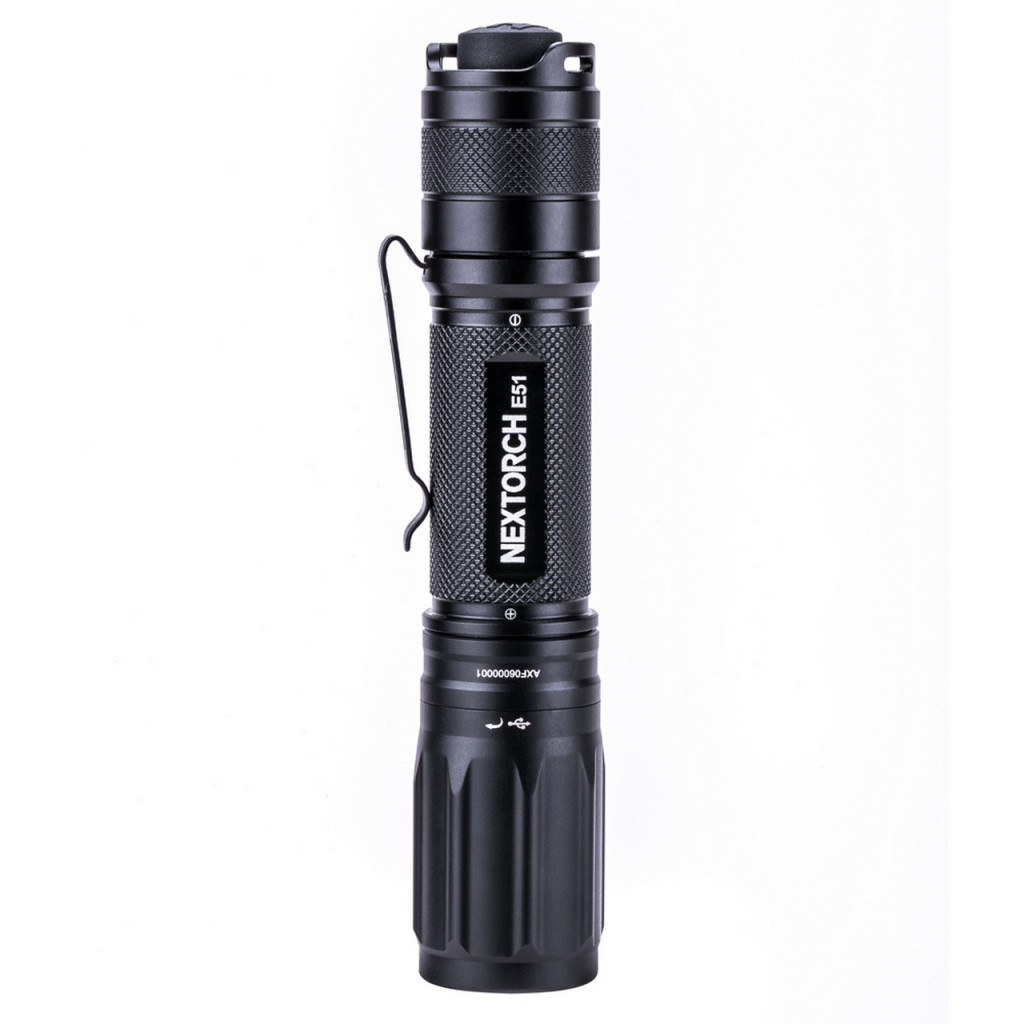 E51 je vysokovýkonná EDC baterka s LED diódou CREE® XP-L, ktorá dodáva až 1 000 lúmenov, rovnako ako deň v tme. E51 je napájaný nabíjateľnou lítium-iónovou batériou 18650 a vďaka svojmu priamemu nabíjaniu micro USB sa dokáže prispôsobiť všetkým nabíjacím zariadeniam napájaným USB. A päť režimov je nastavených tak, aby vyhovovali rôznym potrebám osvetlenia, vrátane krátkodobého, vysokého, stredného, nízkeho a skrytého blesku. Tento rovný kompaktný model E51 je dostatočne rozmerný na dlani a je dostatočne prenosný tým, že sa hodí k vynikajúcej spone z nehrdzavejúcej ocele a odnímateľnému remienku na ruky.