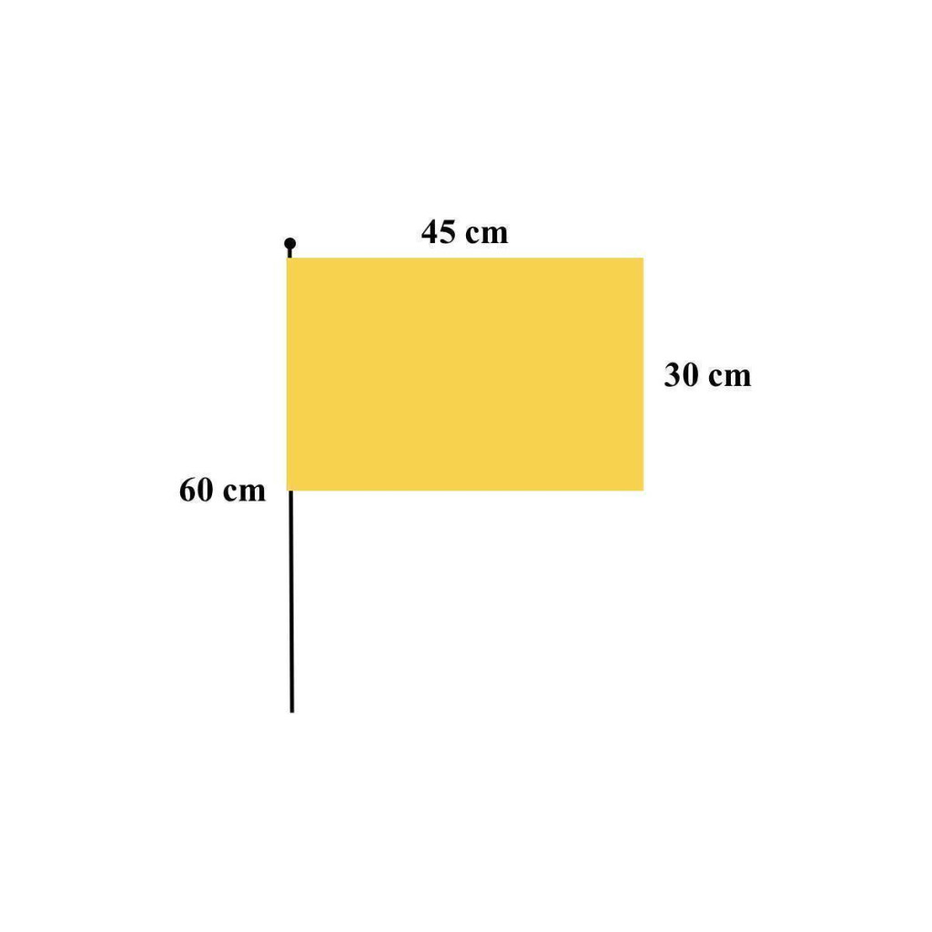 Vlajka je 30 cm vysoká a 45 cm široká a je vyrobená zo 100 % polyesteru. Vlajka je pripevnená na plastovom stožiari s dĺžkou približne 60 cm, ktorý má na vrchu plastový ozdobný prvok. Materiál vlajky je odolný voči vetru, poveternostným vplyvom a vyblednutiu. Vďaka ľahkému materiálu bude stožiar viať aj v miernom vánku.